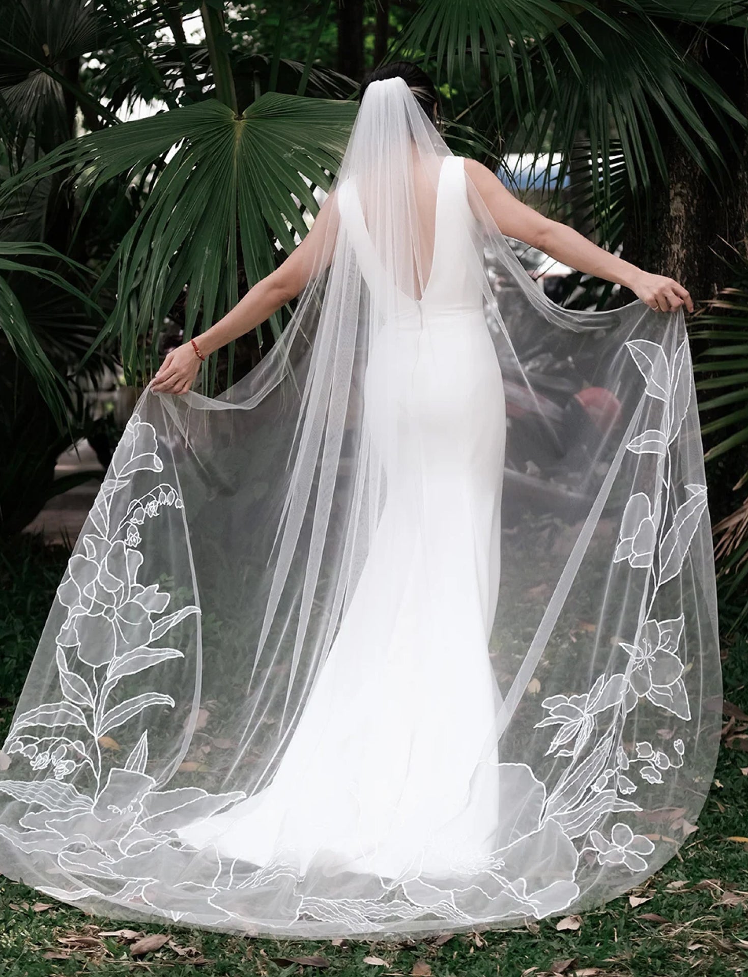 KAITIE | Chapel organza embroidery floral veilFrom $175.00
