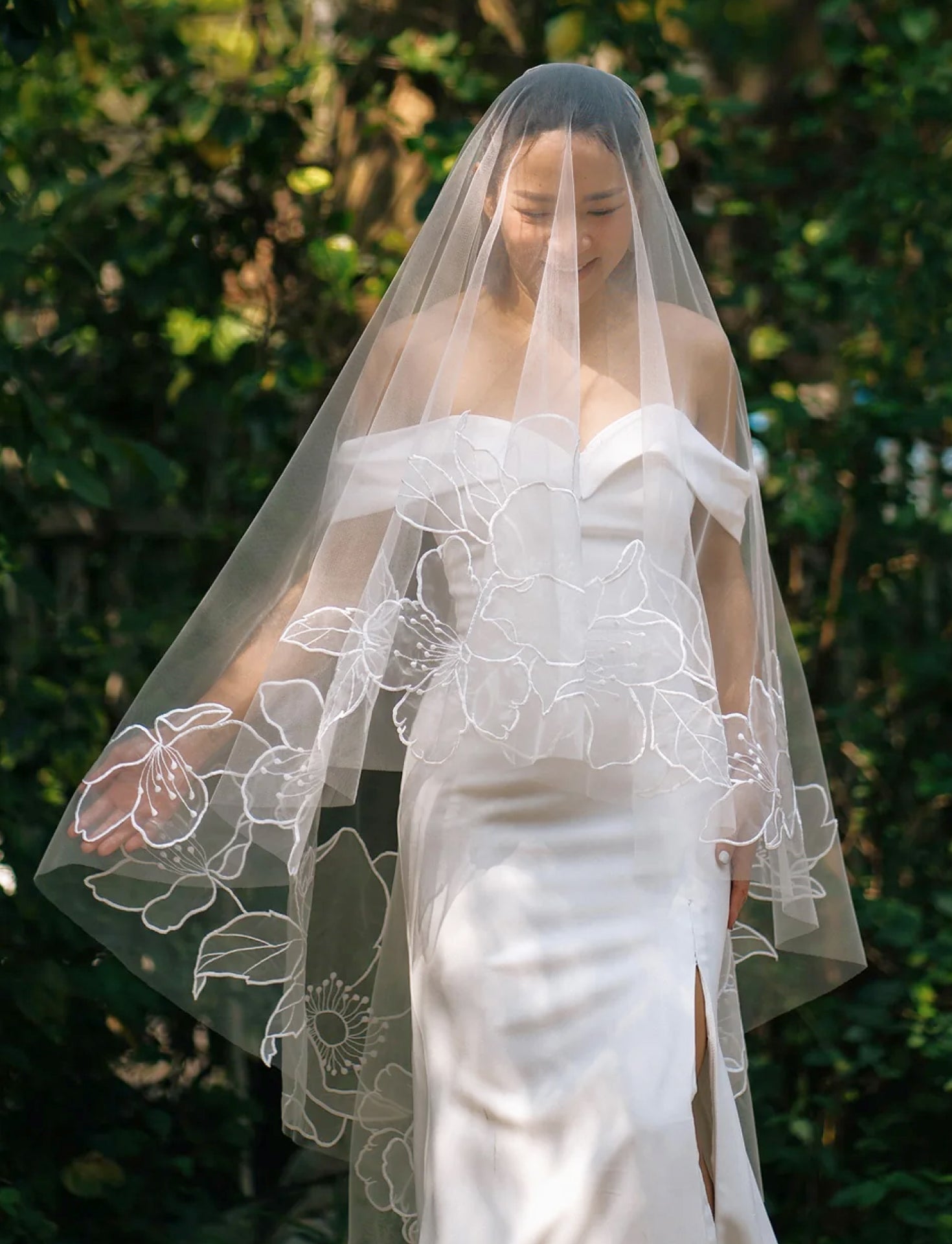 COLORFUL KAITIE | Fingertip organza embroidery floral veilRegular price $230.00