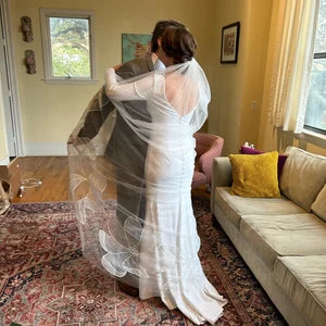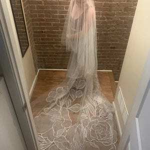 This veil is even more beautiful than I could have imagined! The seller was fantastic and helped me with my custom embroidery. I’m so thrilled and can’t wait to wear this on my wedding day!! Thank you thank you!!