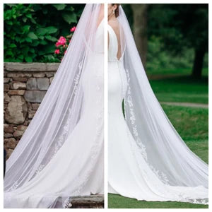 The customizations on the veil came out beautiful. The lace is a perfect match for my dress. I can’t wait to wear on my wedding day and share photos!