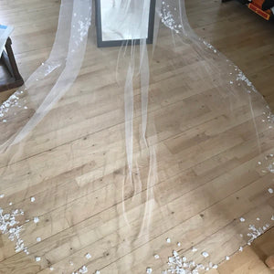 I couldn't have hoped for a more gorgeous veil. I spent months searching for the perfect veil and couldn't find anything. When I discovered this one, I was instantly enamored. It is so unique and special. I received so many compliments and comments on it during my wedding day and the photographer loved to take photos of it. Because it took so long for me to find this veil, I had to place a rush order. I was extremely nervous but Hoa calmed my fears and the veil arrived in time for my day. I highly recommend this veil if you're looking for something different.